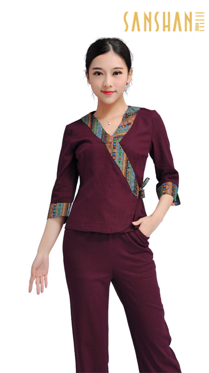 东南亚风情酒店服装订制,三杉提供成都酒店服装订做(个人团体)免费设计/量体/配送/三年超长维护服务。